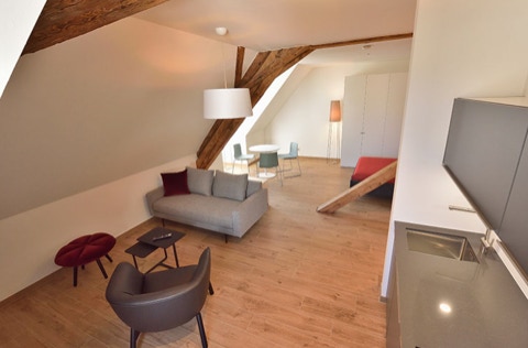Das durchdachte Interieur-Design glänzt durch harmonisch aufeinander abgestimmte Möbel und edle Materialien. Warme Farben und klare Linien vermitteln ein Gefühl der Ruhe und Entspannung.